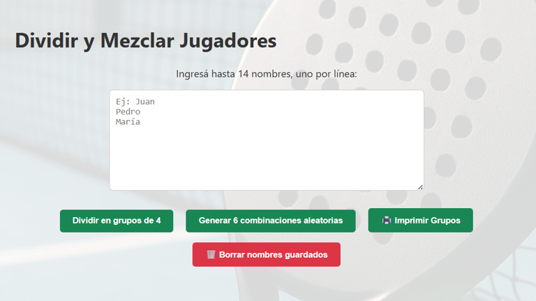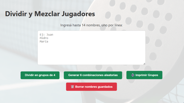 crea grupos de 4 jugadores y los combina en 6 partidos.